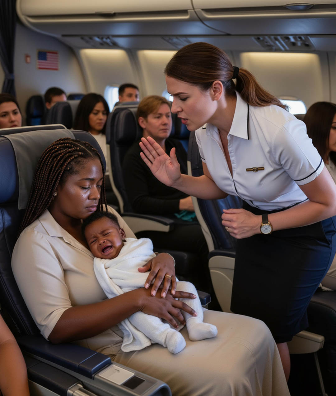 « Madame, vous devriez calmer votre enfant », lança l’hôtesse avec une pointe d’agacement.