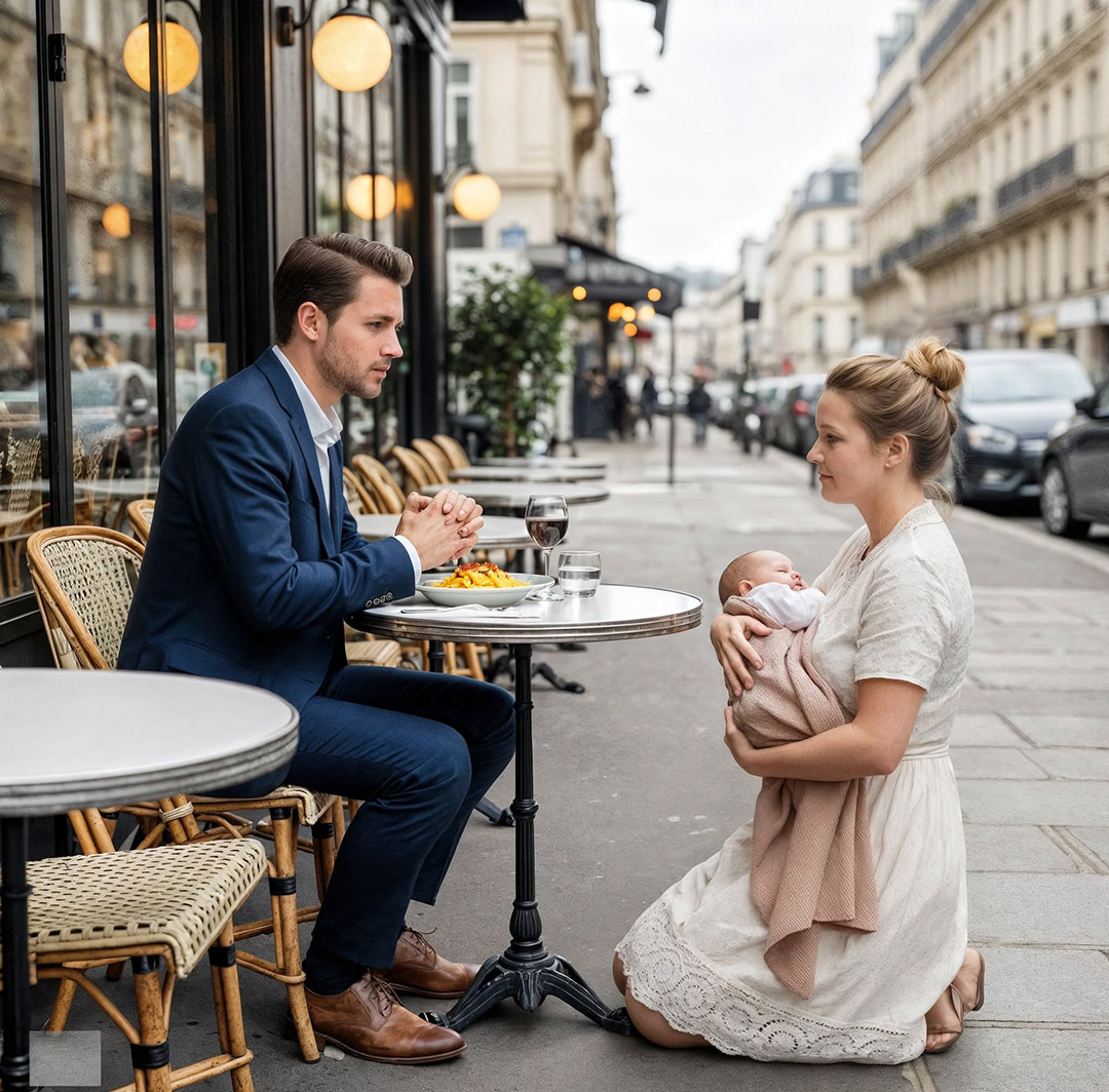 Les semaines passèrent. Camille reprenait des forces, retrouvait sa lumière, se remettait à rire. Puis vint ce dîner — organisé par ses soins. Plus sur le trottoir. À l’intérieur, attablée, dans une robe qu’elle avait retouchée elle-même, et sans son bébé dans les bras pour une fois.