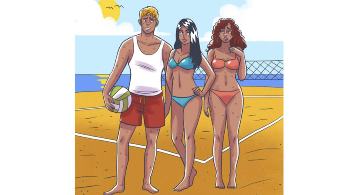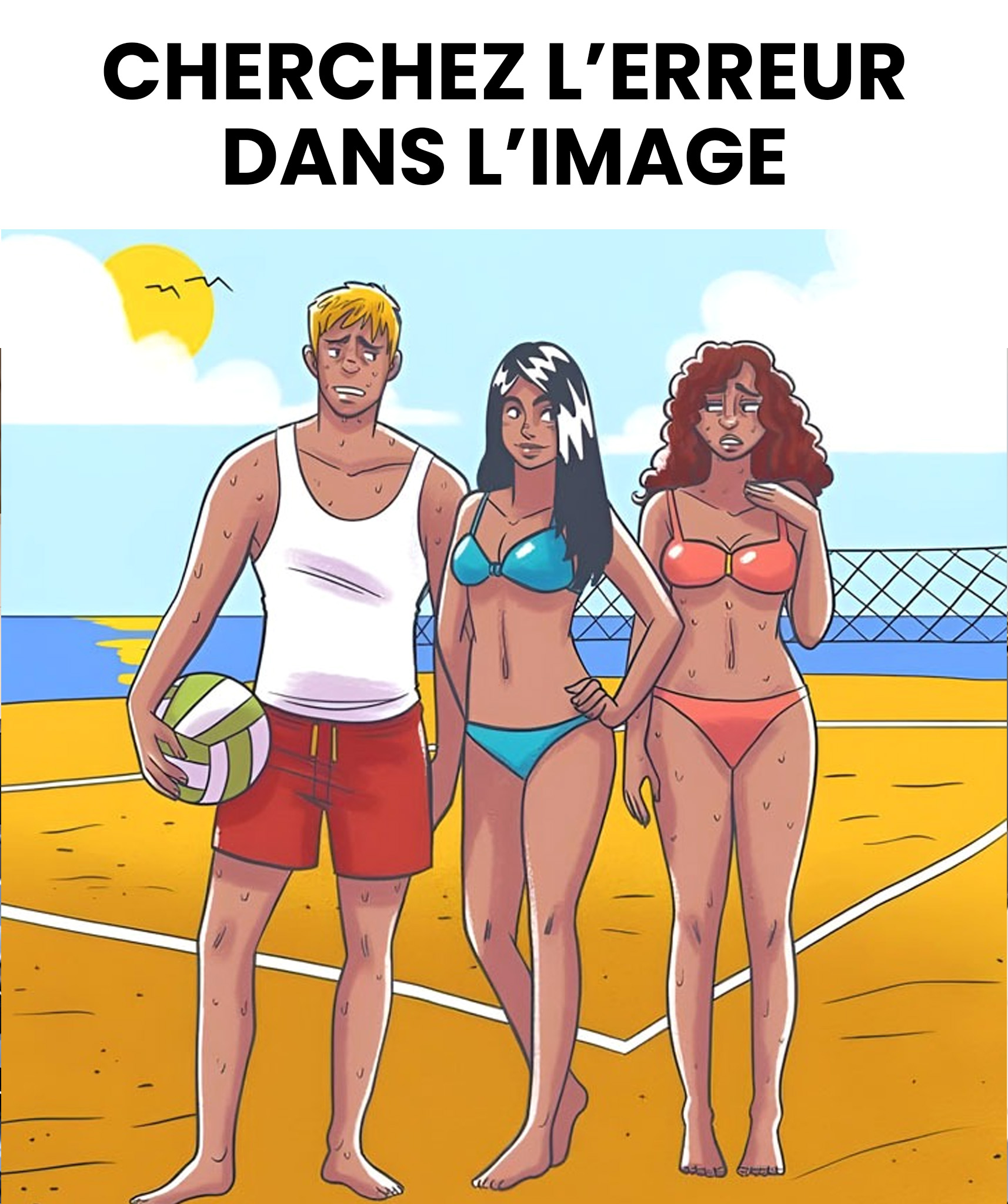 Trois silhouettes se prélassent sur le sable doré, mais l'une d'elles cache une surprenante supercherie. Un indice subtil trahit son identité factice - aurez-vous l'œil assez aiguisé pour le déceler ?