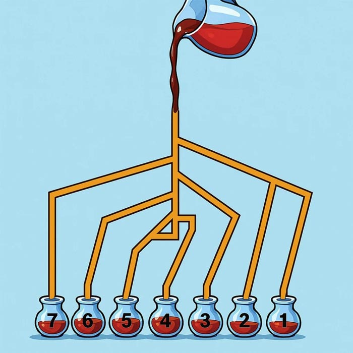 Un système hydraulique complexe avec sept contenants défie votre sens de l'observation. Bien que la solution puisse paraître simple au premier abord, seule une analyse attentive du cheminement de l'eau vous révélera la vérité. Plongez dans cette expérience visuelle fascinante où chaque détail compte.