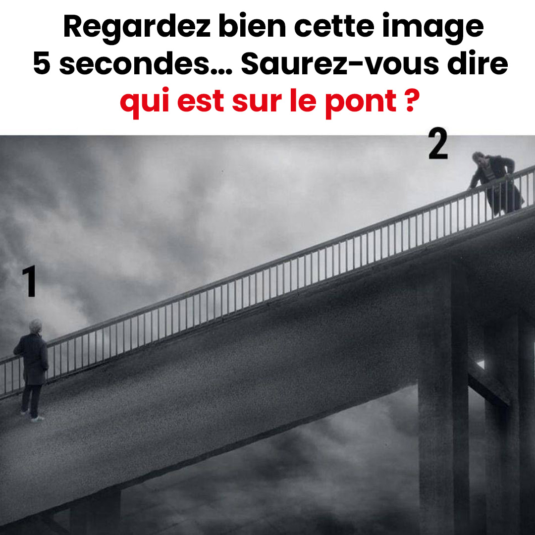 Prenez quelques instants pour observer attentivement la scène. L’idée est de répondre instinctivement, sans trop analyser. La consigne est claire : qui se tient réellement sur le pont ? Pas à côté, pas en dessous, mais directement sur l’ouvrage lui-même.