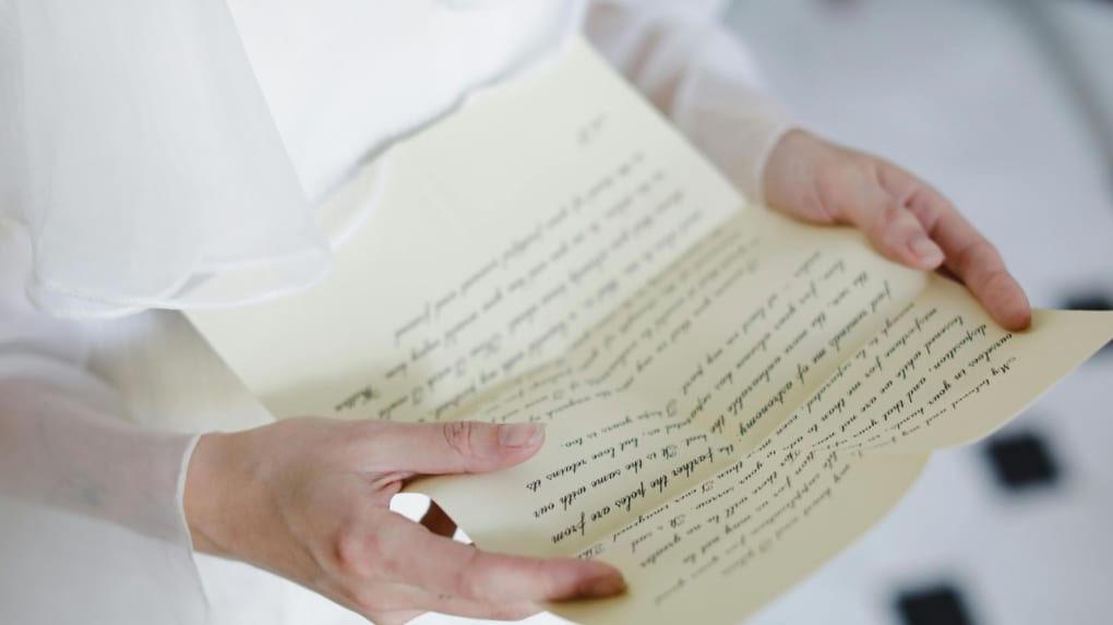 Quelques mois plus tard, une enveloppe m’attendait à la réception. À l’intérieur, une carte ornée de fleurs séchées et quelques mots simples :
