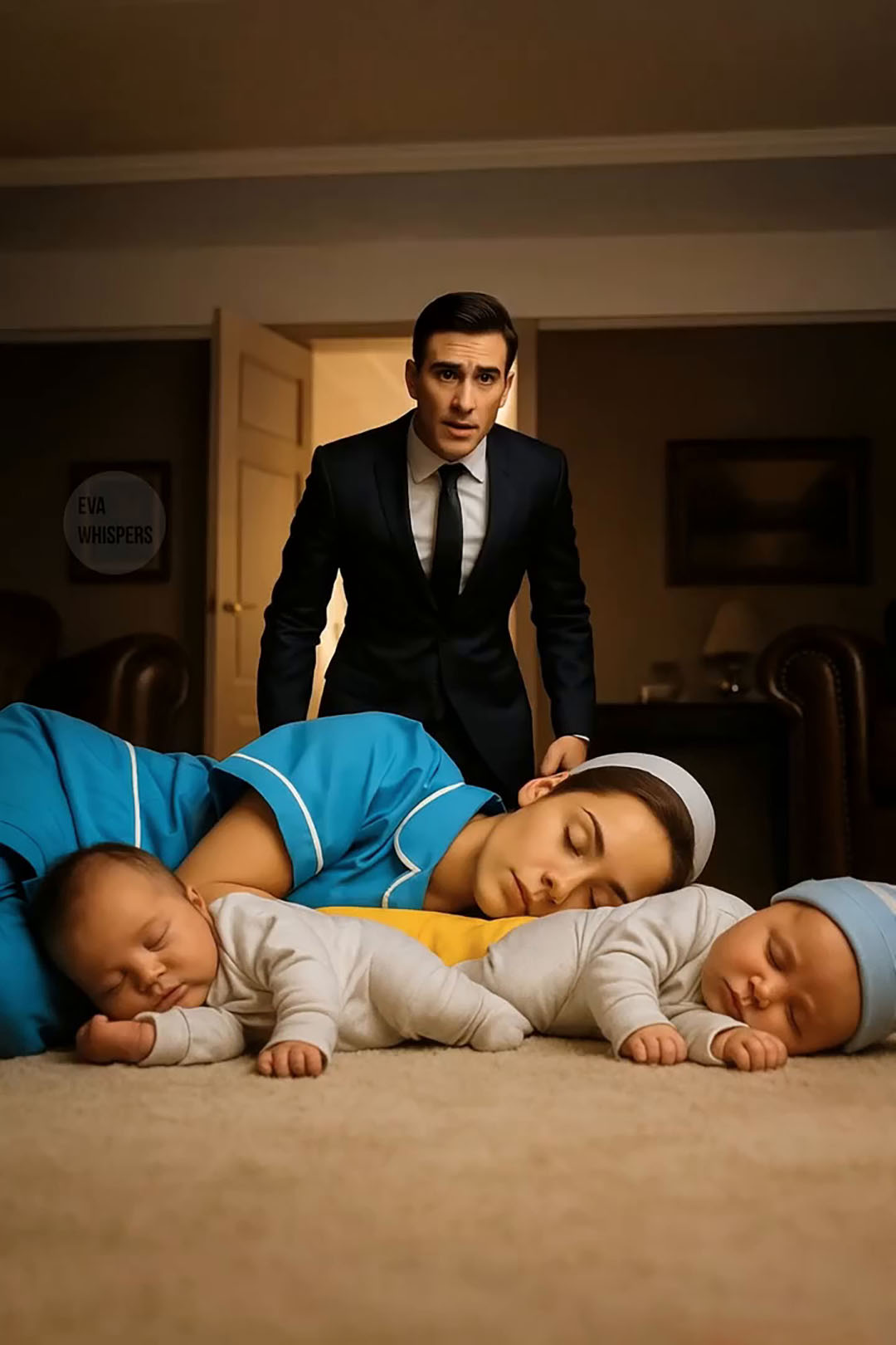 Une femme était allongée directement sur la moquette, sa chevelure foncée déployée sur un coussin improvisé. Blottis contre elle, ses deux garçons jumeaux de six mois somnolaient profondément, leurs visages enfouis contre sa poitrine avec une confiance totale.
