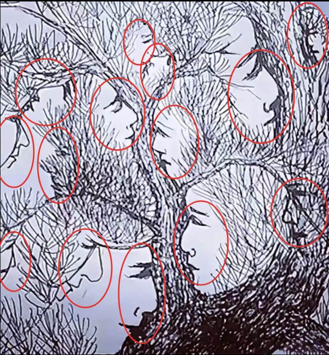 Testez votre acuité visuelle : combien de visages parviendrez-vous à découvrir dans cet arbre énigmatique ?