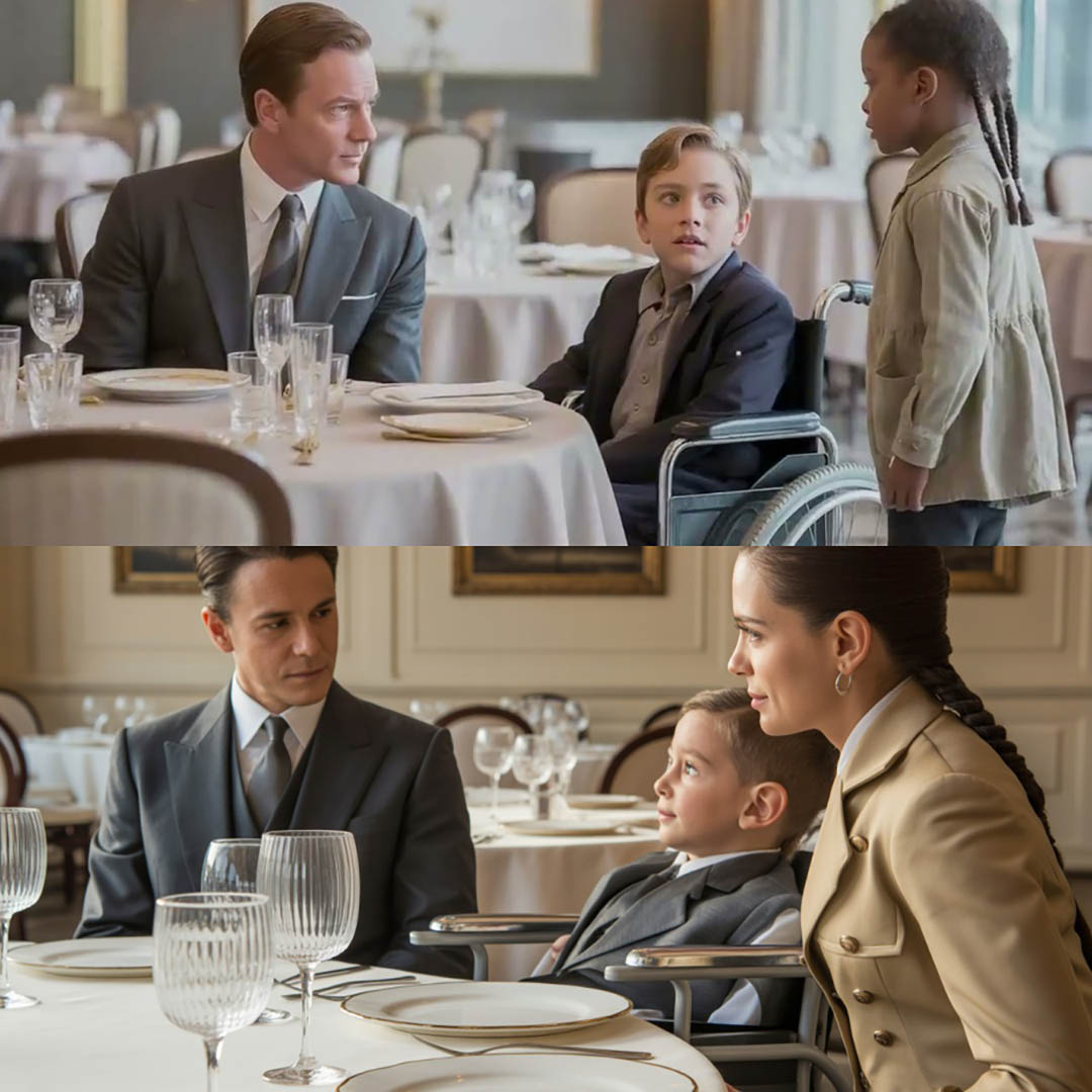 Avant qu’Antoine ne puisse la faire partir, la fillette posa délicatement sa main sur les jambes du garçon. Pas un mot, pas de miracle immédiat. Juste un geste simple, empreint de calme et de force intérieure.