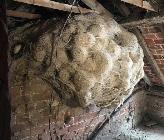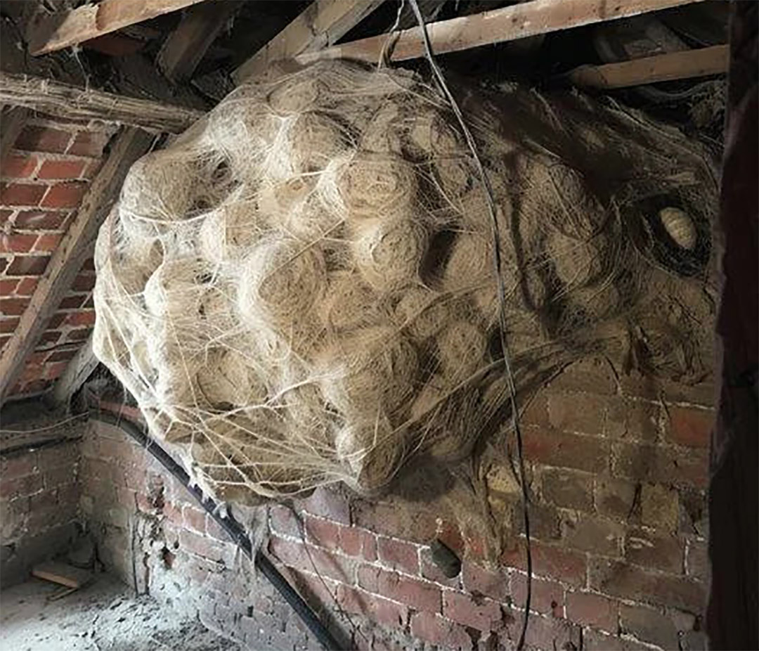 Le nid est immense, vibrant, comme animé d’une vie propre. Julien confie avoir perçu un bruit semblable à « un moteur qui tourne au ralenti, sans jamais s’interrompre ». Un vrombissement profond, presque inquiétant, qui ne faisait que s’amplifier avec le temps. Très vite, il comprend que l’invasion ne se limite pas au jardin : elle s’est propagée jusqu’aux combles de la maison.