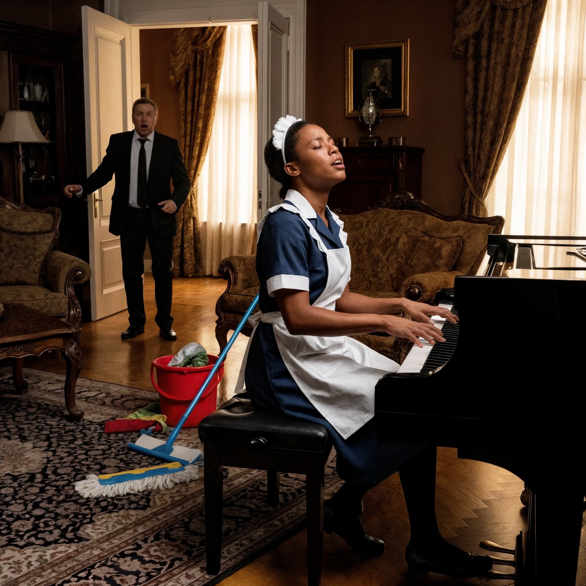 Maïa, son employée de maison, était assise devant le clavier, les yeux fermés, les doigts effleurant les touches avec une grâce naturelle. Une harmonie vibrante emplissait l’espace.