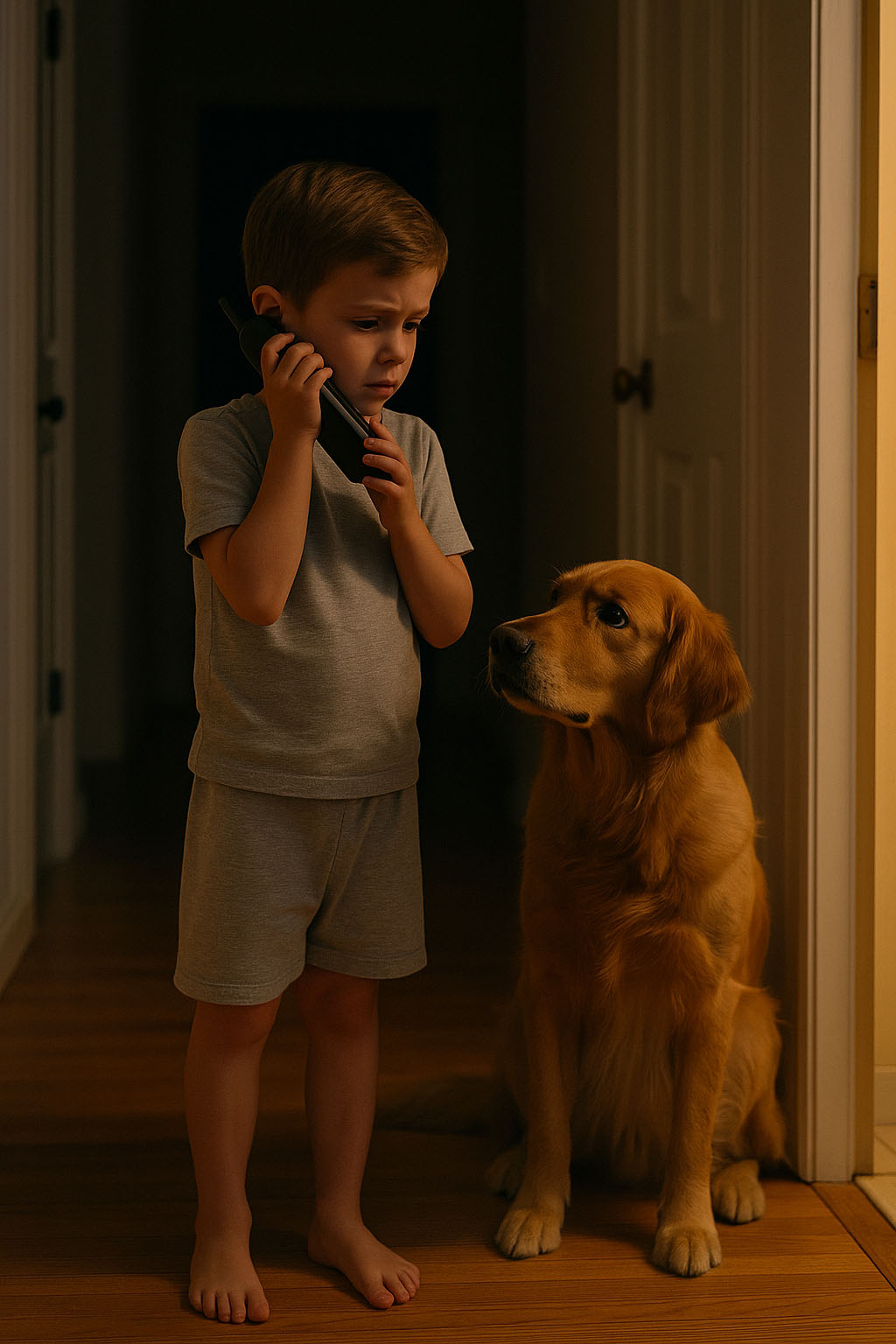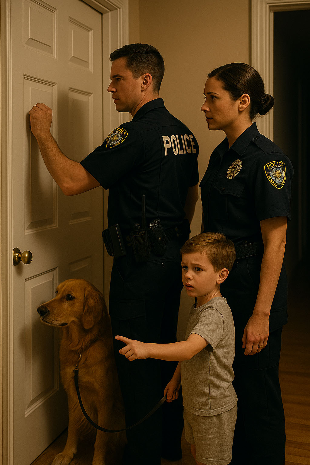 À leur arrivée, les agents découvrent un petit garignon nerveux, pelotonné contre son golden retriever, le regard chargé d’émotion. Les policiers gravissent prudemment l’escalier, s’annoncent avec courtoisie… et tombent sur une situation pour le moins inattendue.