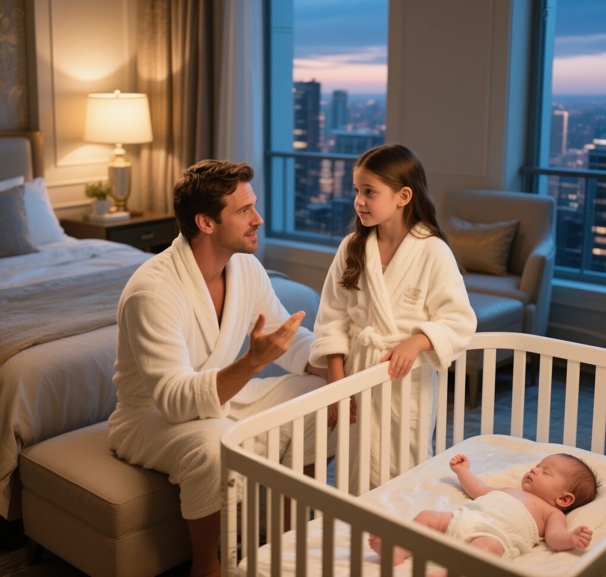 Dans la résidence de Gabriel, un médecin, un cuisinier et un avocat s’affairaient. Le nourrisson a été nourri, examiné, puis installé dans un lit douillet. Léna, lavée et vêtue d’un pyjama confortable, observait chaque geste avec méfiance.