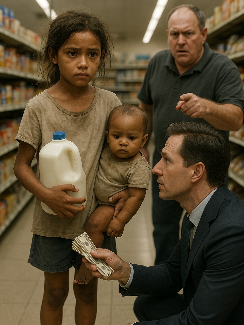 Quand elle a confié que leurs parents étaient partis « pour toujours », l’homme a senti son cœur se serrer. Sans hésiter, il a pris le pack de lait et a déclaré calmement : « Elle vient avec moi. »