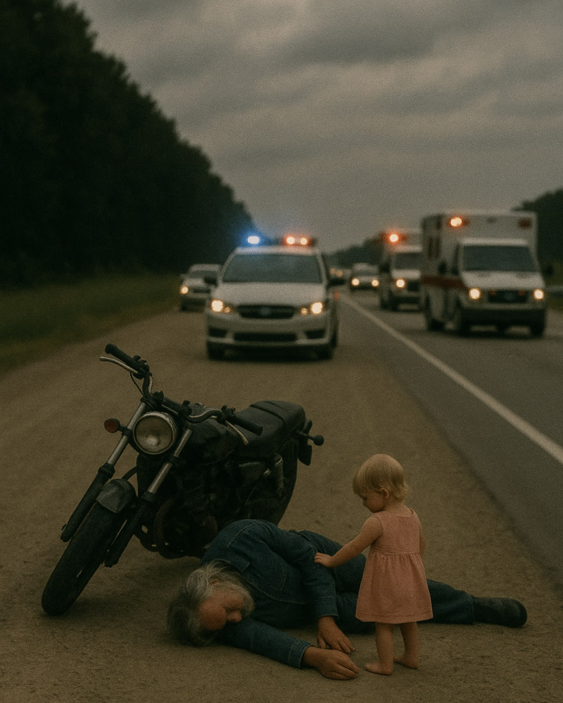 Sans attendre que la voiture ne s’immobilise totalement, Sophie bondit hors du véhicule. Sa robe brillante voltigeant derrière elle, elle dévala une pente verdoyante pour rejoindre un motard inanimé près de sa moto accidentée. L’homme, grièvement blessé, respirait à peine. Avec une assurance déconcertante, la fillette posa son gilet sur la plaie en chuchotant : « Je reste. On m’a dit que tu avais besoin de vingt minutes. »