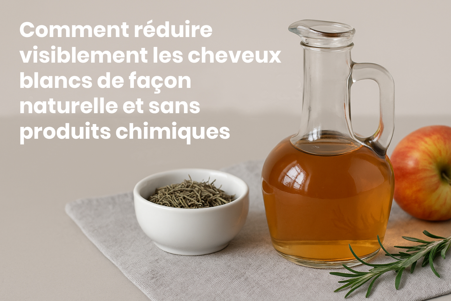 Souvent relégué au rang de simple condiment, le vinaigre de cidre est pourtant un allié beauté insoupçonné. Il rééquilibre le pH du cuir chevelu, nettoie en douceur et, surtout, il est génial pour **redonner de la brillance** à la fibre capillaire. Et ce n’est pas tout : il a la particularité d’assombrir légèrement les cheveux blancs, leur offrant ainsi un aspect **plus homogène et lumineux**, le tout dans la bienveillance.