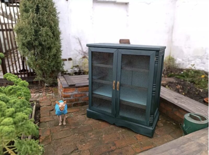 Le défi majeur ? L’absence des tiroirs d’origine. Plutôt que de courir après des pièces de rechange introuvables, nous avons fabriqué des portes sur mesure en contreplaqué. Quelques découpes précises, des ornements en bois pour le caractère, et le tour était joué ! Coup de génie : l’ajout de grilles dorées sur ces nouvelles façades. Elles apportent non seulement du style, mais garantissent aussi une aération optimale – idéal pour un meuble destiné à ranger des chaussures, des plantes ou des outils de jardin.