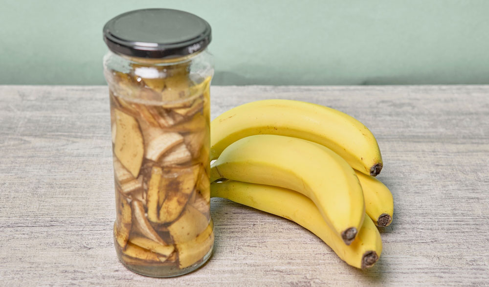 Vous aspirez à réduire votre consommation de nettoyants chimiques ? Déposez vos épluchures de banane dans un bocal, recouvrez-les entièrement de vinaigre blanc et laissez reposer pendant une semaine. Filtrez ensuite ce mélange et diluez-le avec la même quantité d’eau. Ce produit maison convient parfaitement pour l’entretien des comptoirs, des salles de bains ou même des surfaces vitrées !