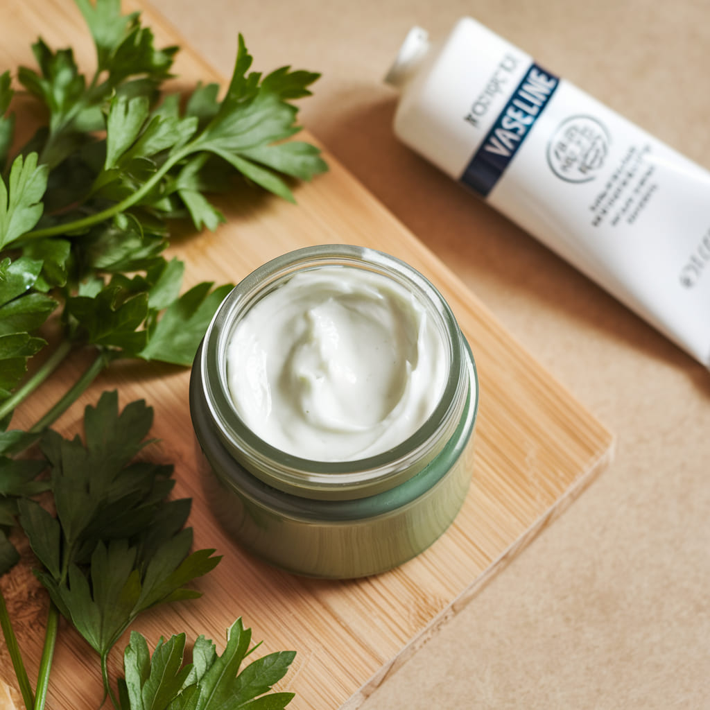 Depuis des années, la vaseline s’est imposée comme un incontournable de nos routines. Son pouvoir occlusif forme une barrière protectrice qui retient l’hydratation et préserve la peau des agressions extérieures. Parfaite pour les zones sèches ou fragiles, elle adoucit et améliore visiblement la texture cutanée. Associée au persil, elle devient un allié de choix pour régénérer la peau en profondeur.
