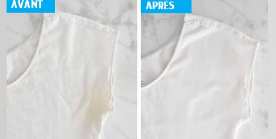 Les taches de sueur sur les vêtements clairs peuvent être récalcitrantes. Le vinaigre blanc aide à décomposer les résidus de transpiration et de déodorant qui s’accumulent.