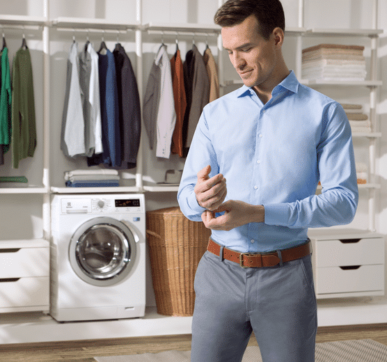 - Chemises, blouses et robes : suspendez-les sur un cintre dès la sortie de la machine. Le poids de l’humidité agit comme un défroisseur naturel.