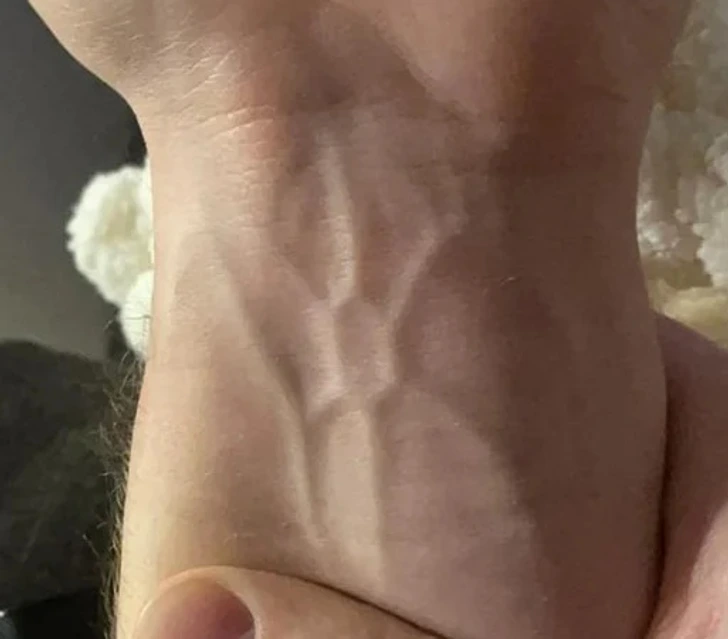 Un motif veineux en forme d’hexagone sur le poignet