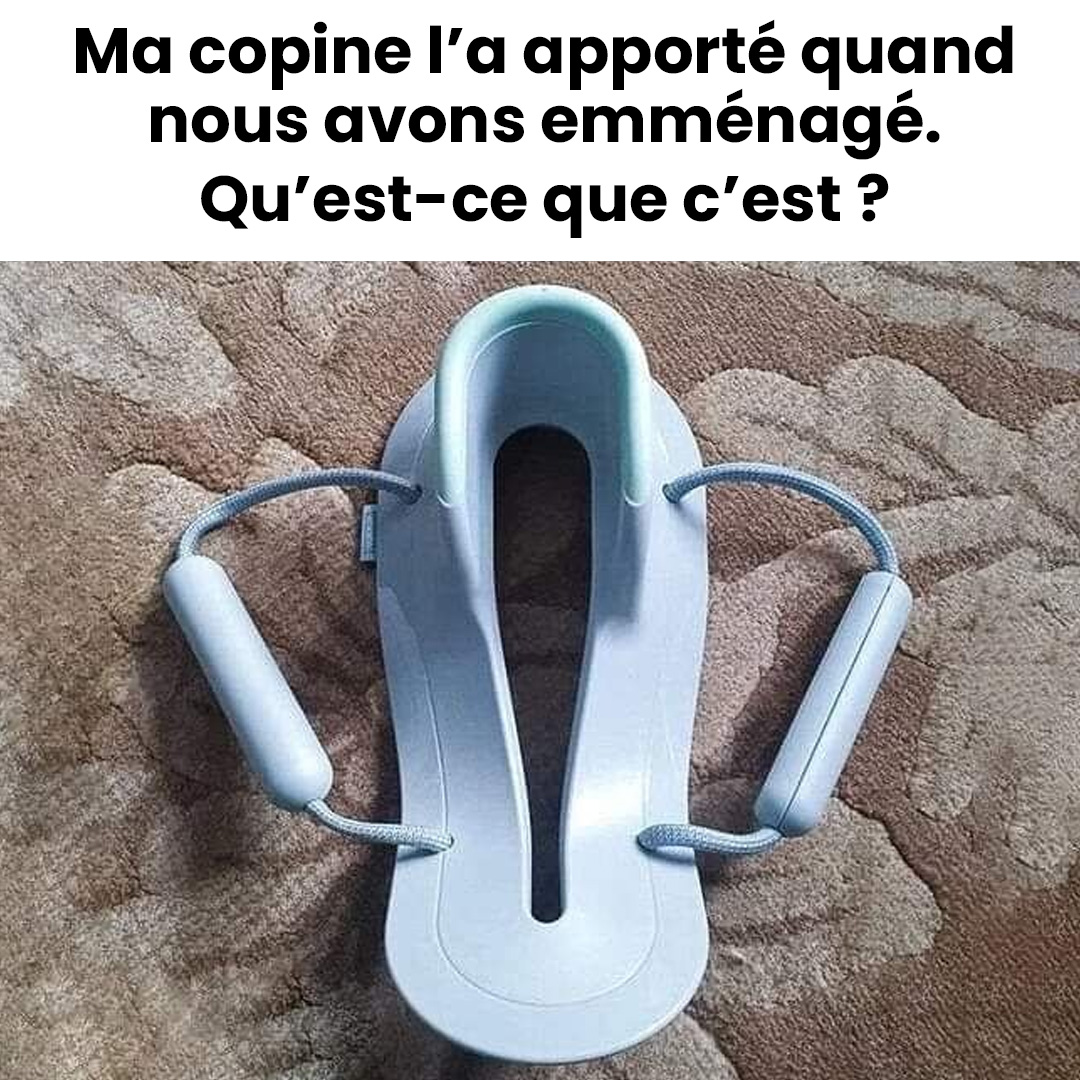Pour terminer, cet objet au design inhabituel a provoqué l’hilarité : certains y voyaient un urinoir féminin nomade. Erreur ! Il s’agissait en réalité d’un équipement pour renforcer la sangle abdominale. Preuve que l’apparence ne révèle pas toujours l’utilité.