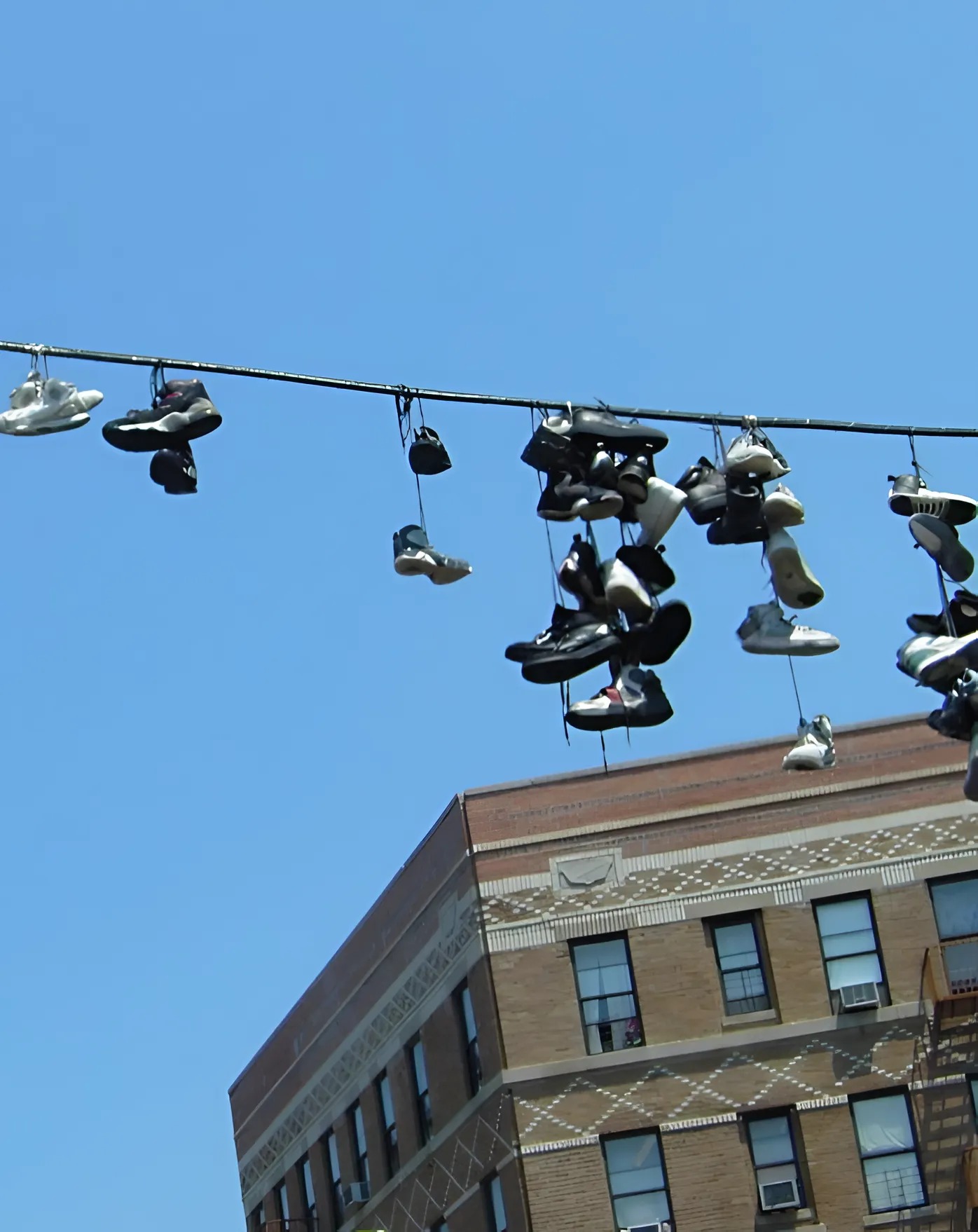 Ce qui fascine vraiment, avec ces chaussures suspendues, c’est leur part de mystère. Elles apparaissent comme par magie, restent là des mois, voire des années, sans que personne ne sache vraiment d’où elles viennent. Cette forme d’expression anonyme, éphémère et silencieuse, s’immisce dans notre quotidien sans y avoir été invitée.