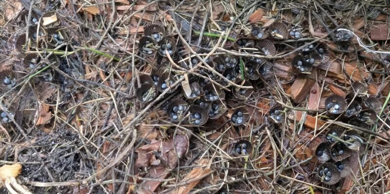Ce qui nous a le plus marqués, au-delà de l’apparence singulière de ces champignons, c’est leur remarquable aptitude à rester discrets. D’une invisibilité presque totale, ils se développent dans le paillis, les écorces ou le compost, ces espaces souvent ignorés par notre regard. Pourtant, sous nos pas, se déploie une véritable symphonie du vivant, un microcosme où chaque élément a sa signification.